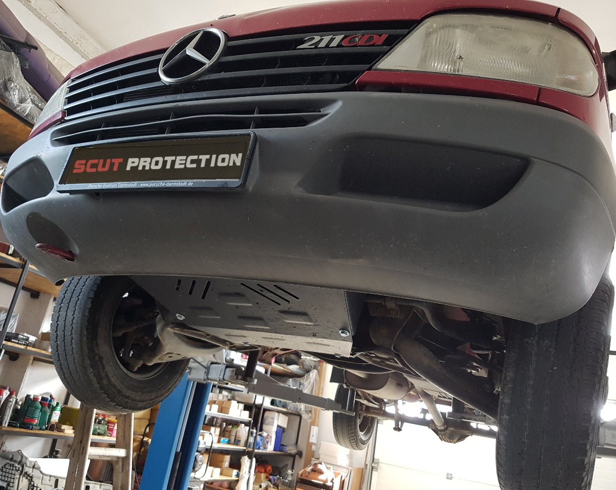 This underbody protection is designed to cover the engine where confirmed for Volkswagen LT.