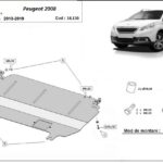 Steel engine and gearbox skid plate for Peugeot 2008 (2013-2019) with 2 mm and protection for the engine and gearbox.
