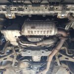 Steel engine and radiator skid plate for Subaru Legacy IV (2003-2009) with 2 mm and protection for the engine and radiator.