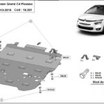 Steel engine, front bumper, gearbox, and radiator skid plate for Citroen C4 Picasso (2013-2018) with 2 mm and protection for the engine, front bumper, gearbox, and radiator.