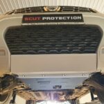 Steel engine, front bumper, gearbox, and radiator skid plate for Dacia Duster (2018-2024) with 2 mm and protection for the engine, front bumper, gearbox, and radiator.
