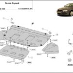 Steel engine, front bumper, gearbox, and radiator skid plate for Skoda Superb (2000-2008) with 2 mm and protection for the engine, front bumper, gearbox, and radiator.