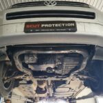 This underbody protection is designed to cover the engine, front bumper, gearbox, and radiator where confirmed for Volkswagen T5 Caravelle.