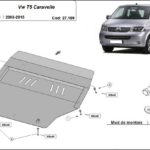 Steel engine, front bumper, gearbox, and radiator skid plate for Volkswagen T5 Caravelle (2003-2015) with 2 mm and protection for the engine, front bumper, gearbox, and radiator.