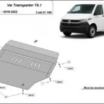 This underbody protection is designed to cover the engine, front bumper, gearbox, and radiator where confirmed for Volkswagen Transporter T6.1.