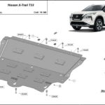 This underbody protection is designed to cover the engine, gearbox, and radiator where confirmed for Nissan X-Trail T33.