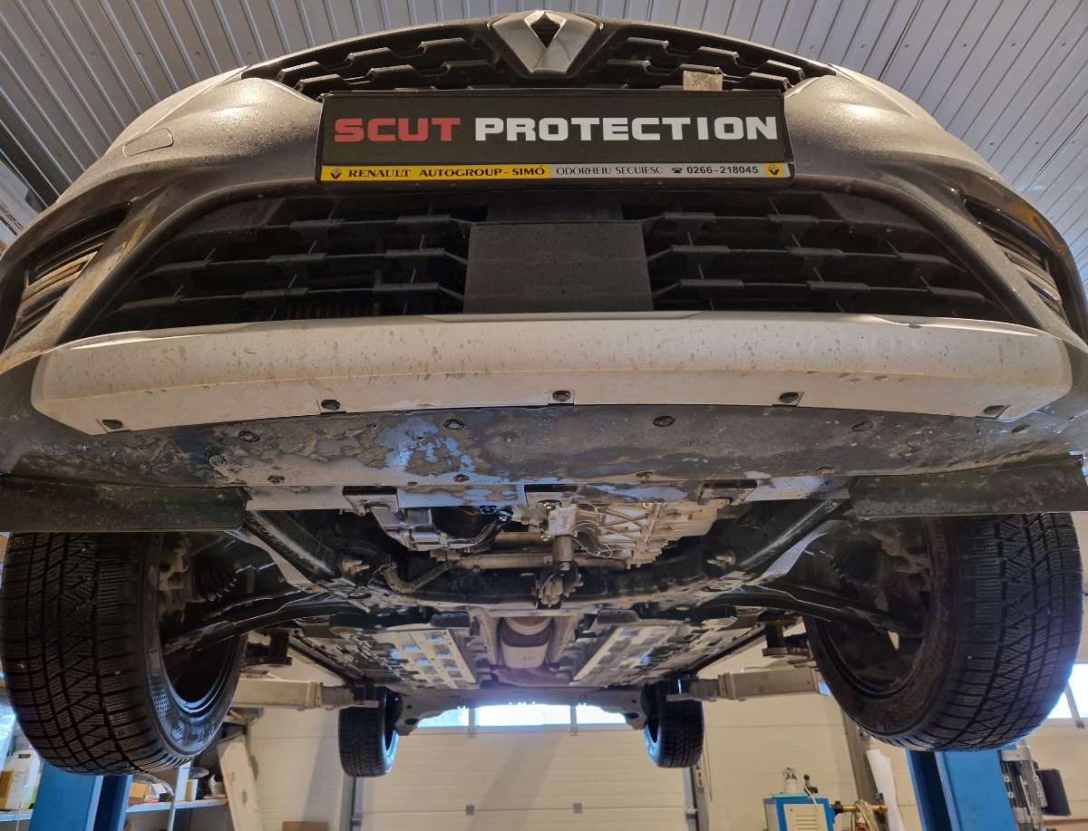 This underbody protection is designed to cover the engine, gearbox, and radiator where confirmed for Renault Symbioz.