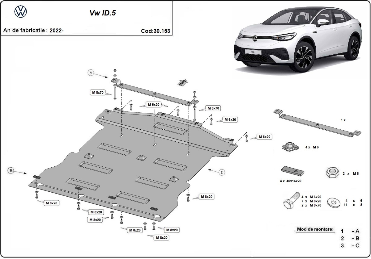 This underbody protection is designed to cover the engine, gearbox, and radiator where confirmed for Volkswagen ID 5.