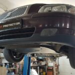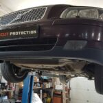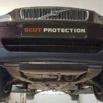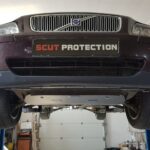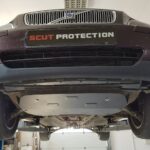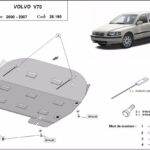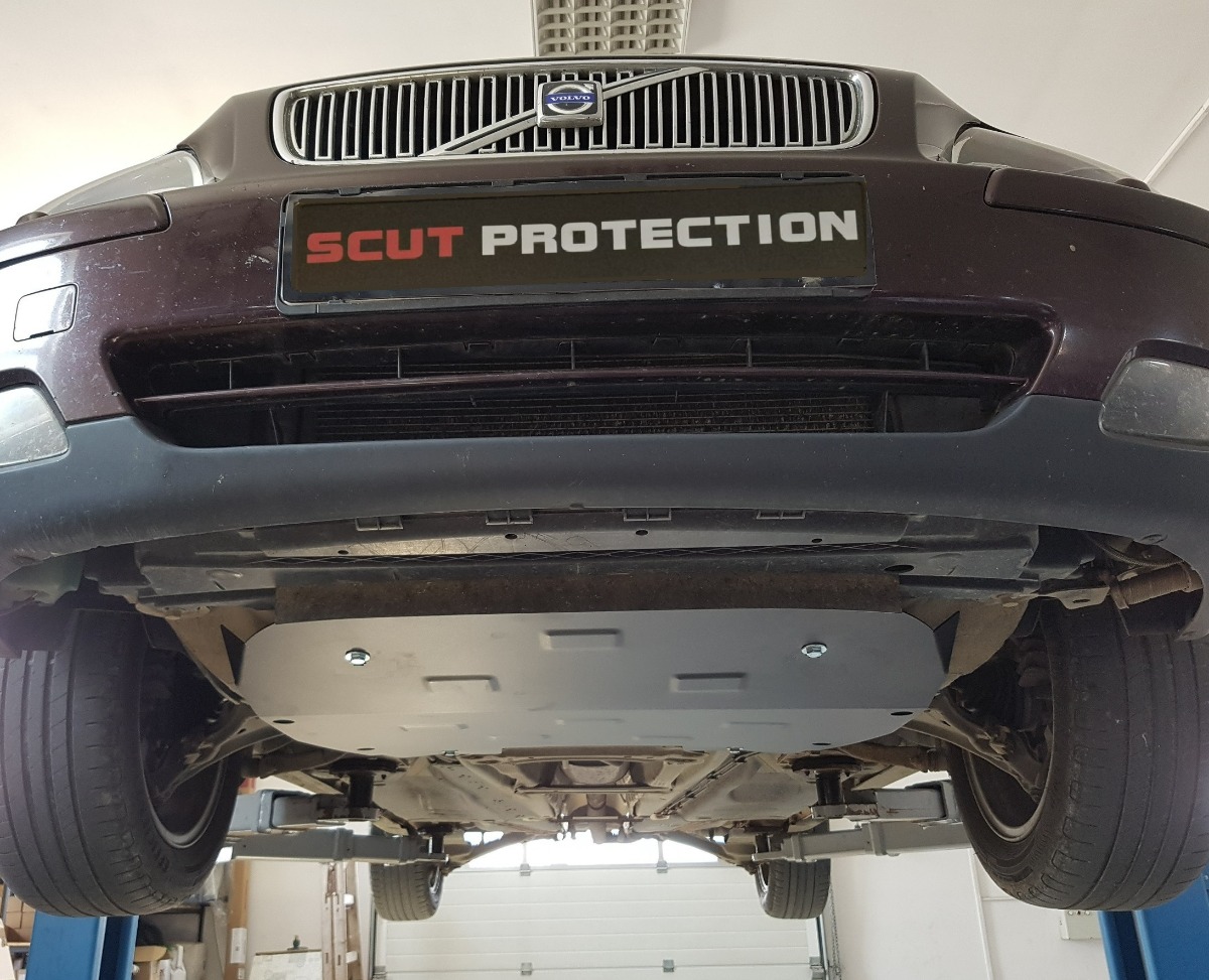 Steel engine, gearbox, and radiator skid plate for Volvo V70 (2000-2007) with 2 mm and protection for the engine, gearbox, and radiator.
