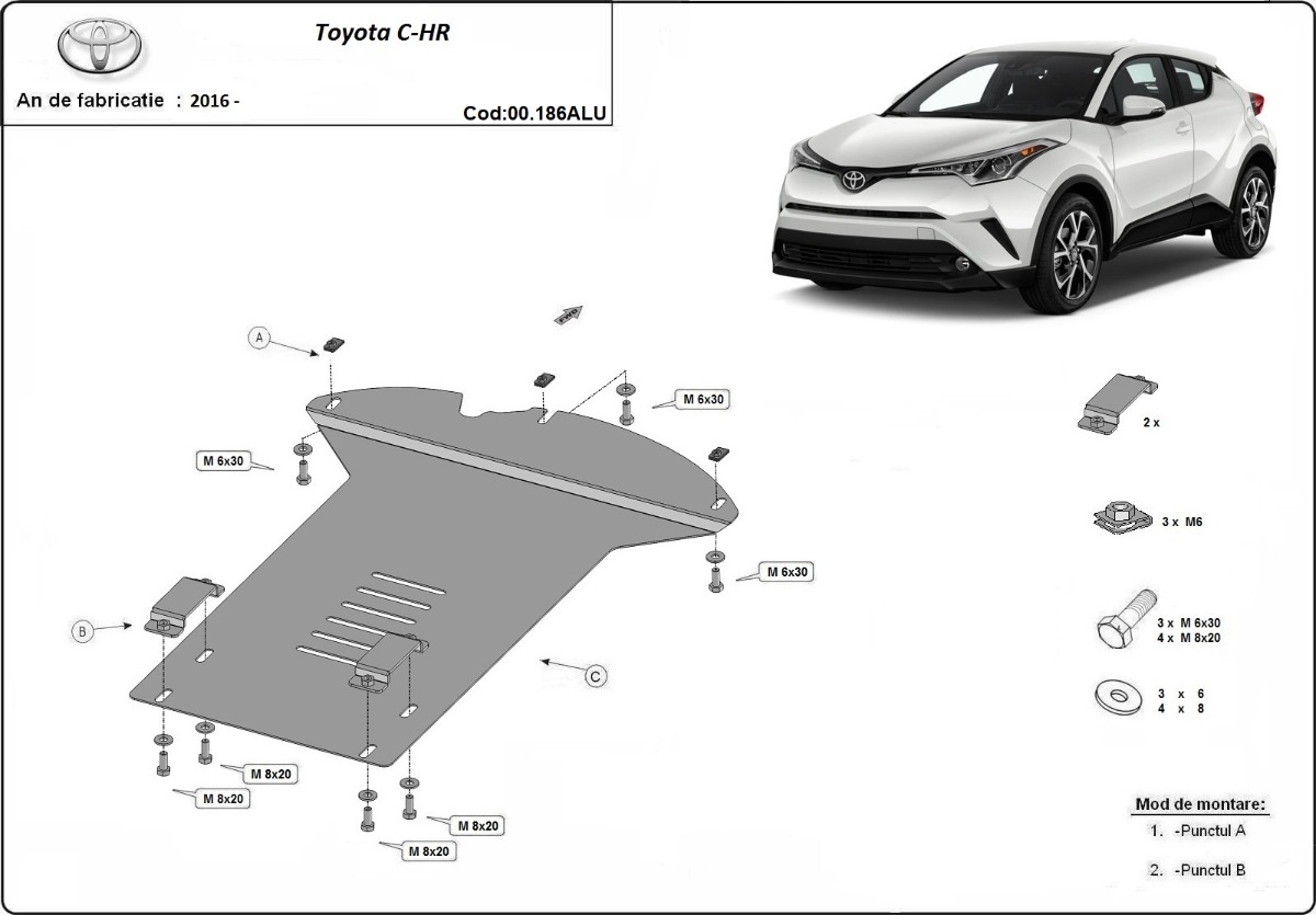Aluminum catalytic converter plate / cat lock for Toyota C-HR (2016-2023) with 3 mm and protection for the catalytic converter.