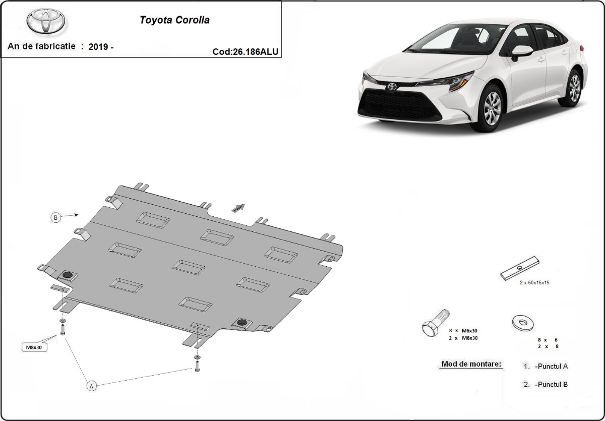 This underbody protection is designed to cover the engine and gearbox where confirmed for Toyota Corolla.