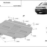 This underbody protection is designed to cover the engine, front bumper, gearbox, and radiator where confirmed for Fiat Doblo.
