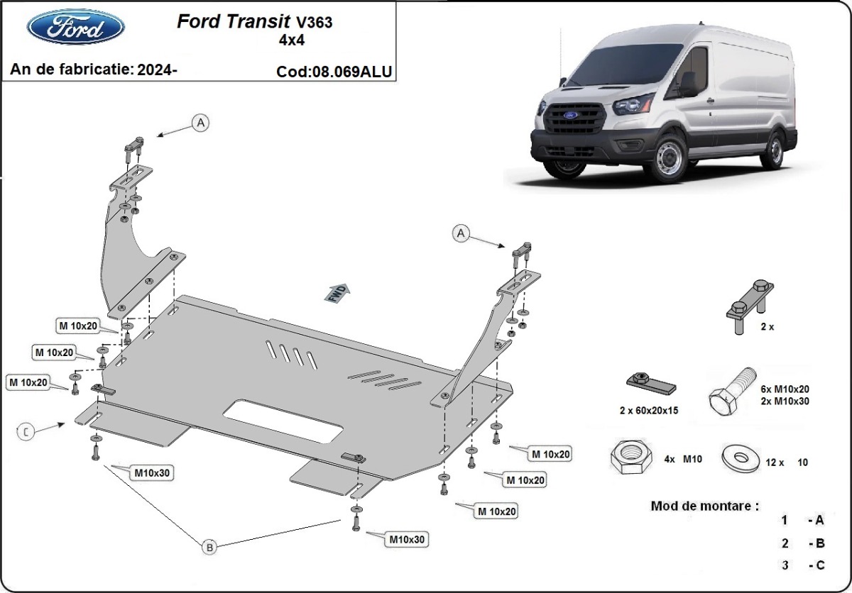 This underbody protection is designed to cover the engine, gearbox, and radiator where confirmed for Ford Transit V363 4×4.