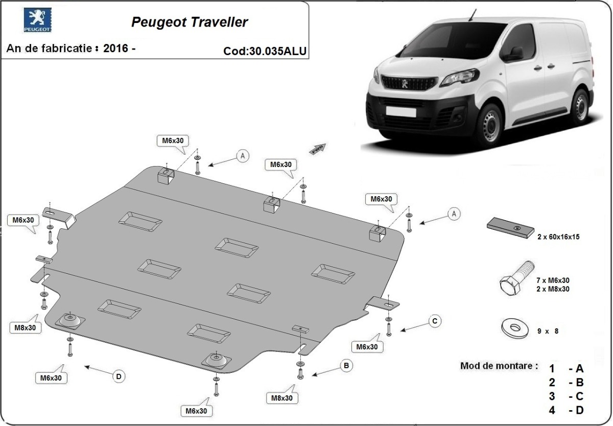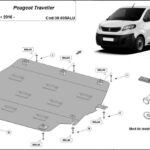 This underbody protection is designed to cover the engine, gearbox, and radiator where confirmed for Peugeot Traveller.