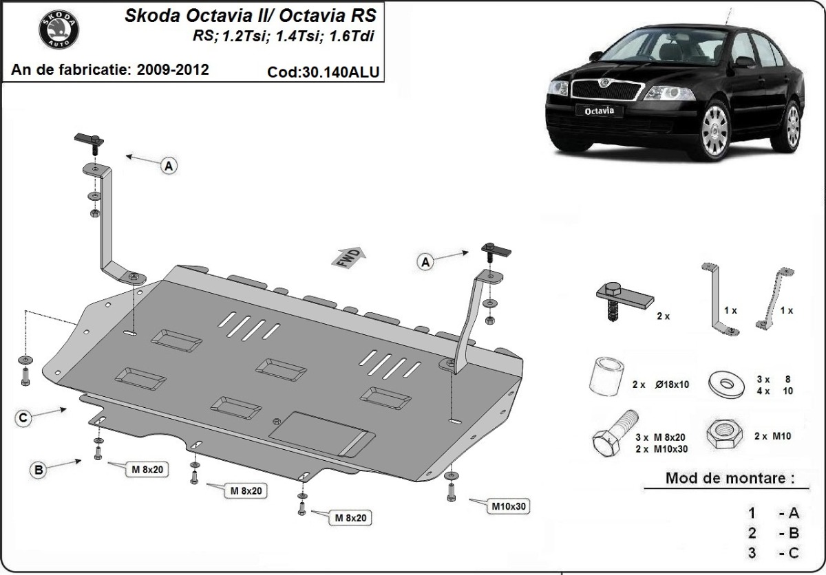 This underbody protection is designed to cover the engine, gearbox, and radiator where confirmed for Skoda Octavia 2.