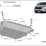 This underbody protection is designed to cover the engine, gearbox, and radiator where confirmed for the protection of the engine and the gearbox for Ford Transit Custom.