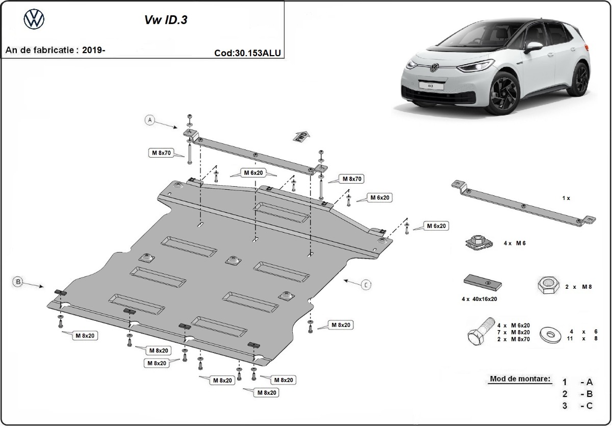 This underbody protection is designed to cover the engine, gearbox, and radiator where confirmed for Volkswagen ID.3.