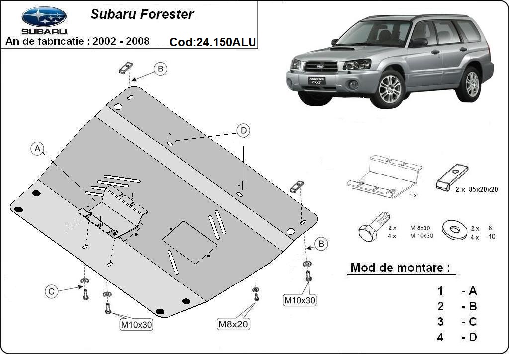 Aluminum engine skid plate for Subaru Forester 2 (2002-2008) with 3 mm and protection for the engine.