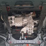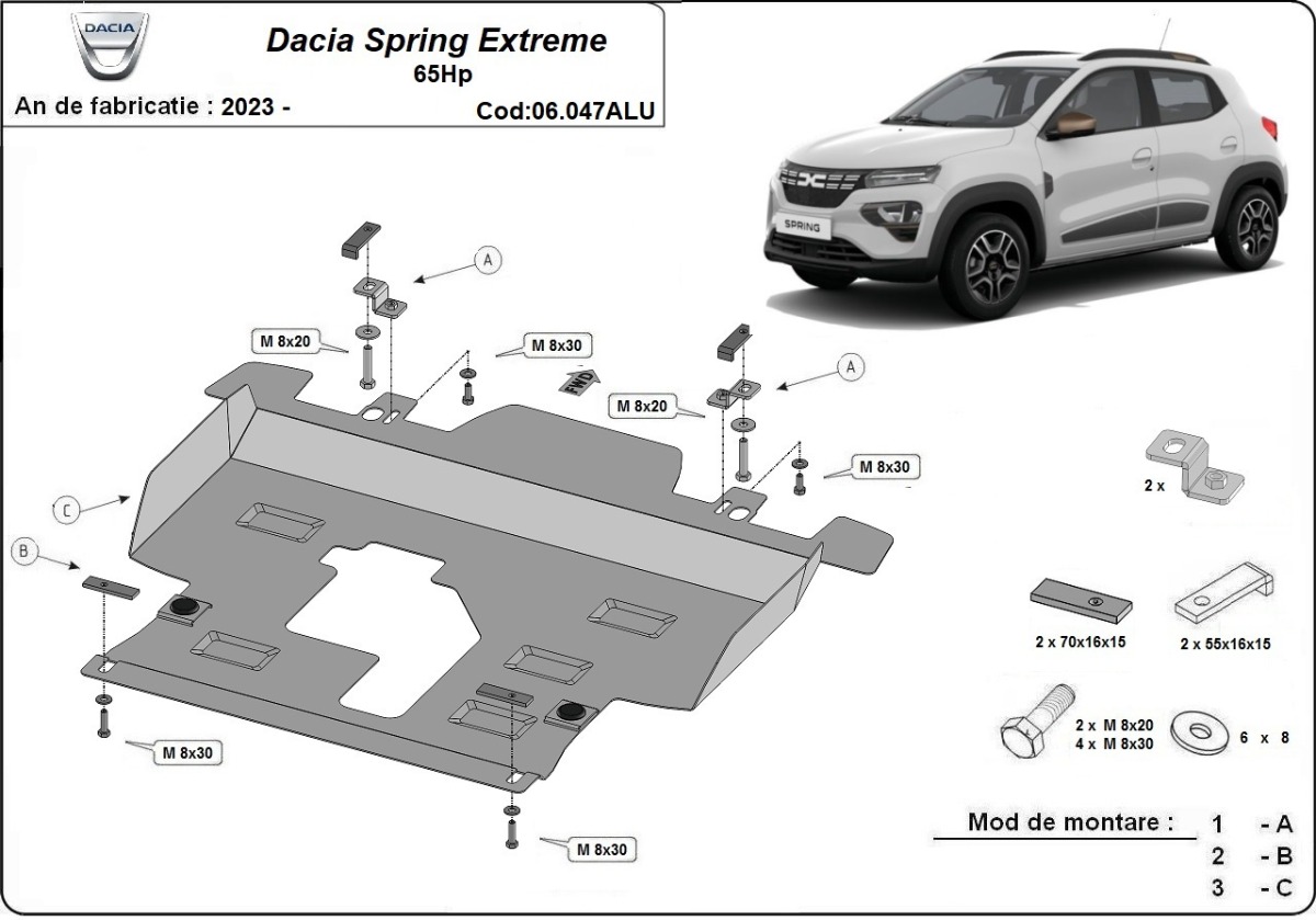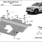 This underbody protection is designed to cover the engine, gearbox, and radiator where confirmed for Dacia Spring Extreme.