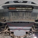 Aluminum gearbox and transfer case skid plate for Nissan Navara (2005-2015) with 4 mm and protection for the gearbox and transfer case.