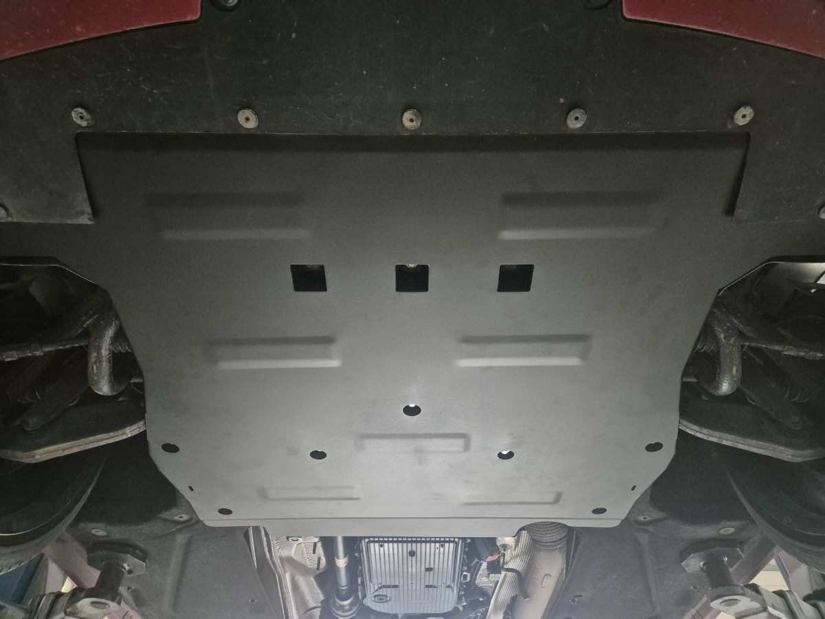 The skid plate is made of 2 mm thick steel, providing a solid barrier against impacts while remaining suitable for daily use. Listed weight is 15 kg, so please refer to the product page or packaging for the actual weight information. It mounts to the vehicle’s existing attachment points without drilling or modification to the vehicle structure, preserving the factory mounting points.