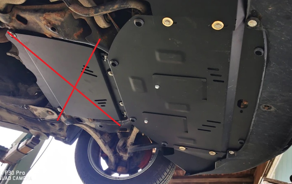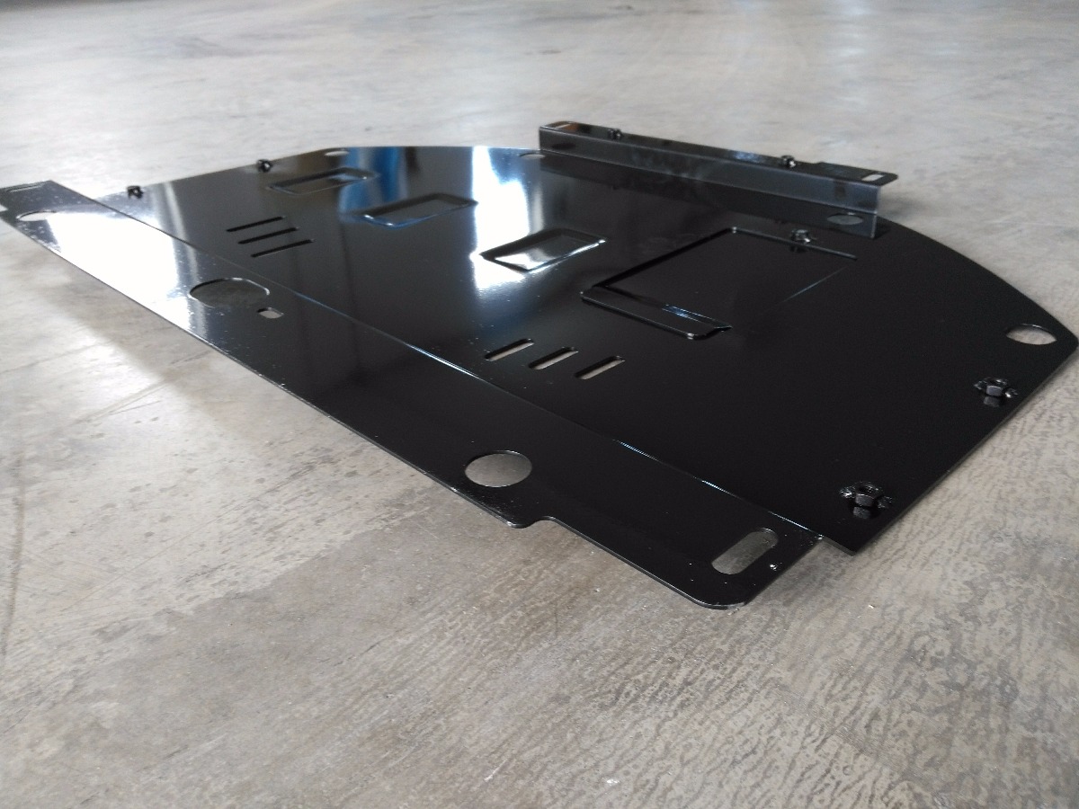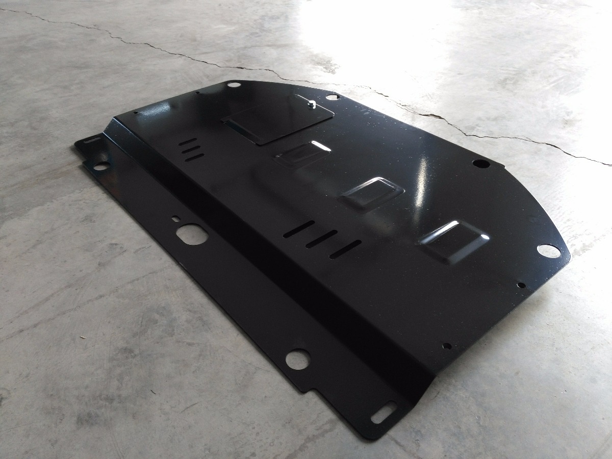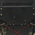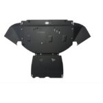 The skid plate is made from steel and has a thickness of 2 mm. Weight: 9 kg. Installation uses the vehicle’s existing attachment points. No drilling or modification to the vehicle structure is required. Detailed installation instructions are included.