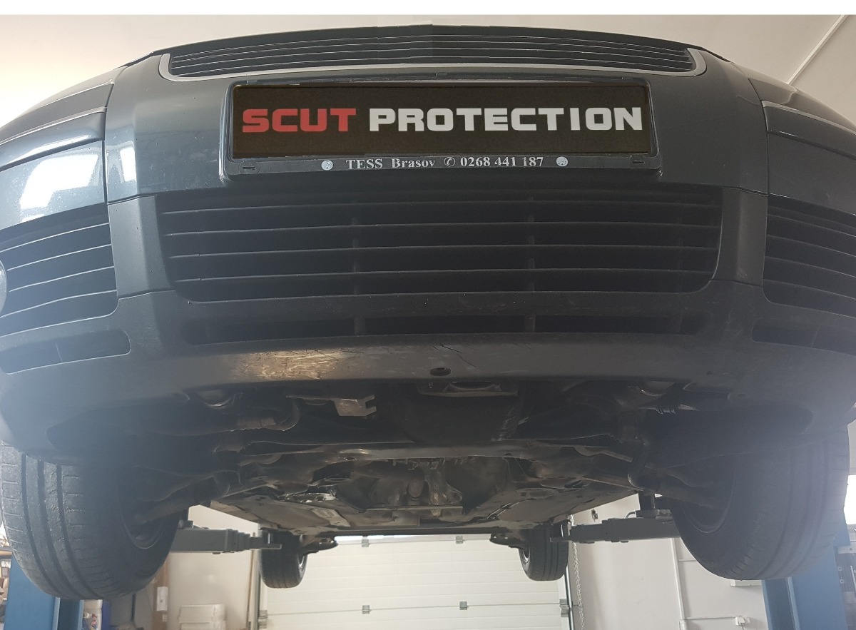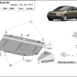 This steel underbody skid plate fits Audi A4 B6 model years 2000-2005. It protects the engine, radiator, and front bumper. It is built for road use where the underside of the car is exposed to contact from the road surface.